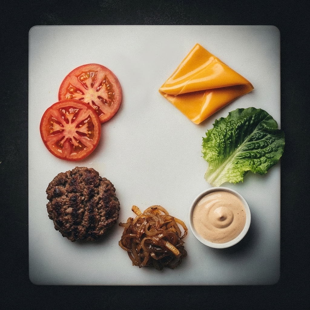 Tomato, Grilled Rasher, Cheese, Choose Filling, Caramelised Onion, Lettuce, Special Sauce.